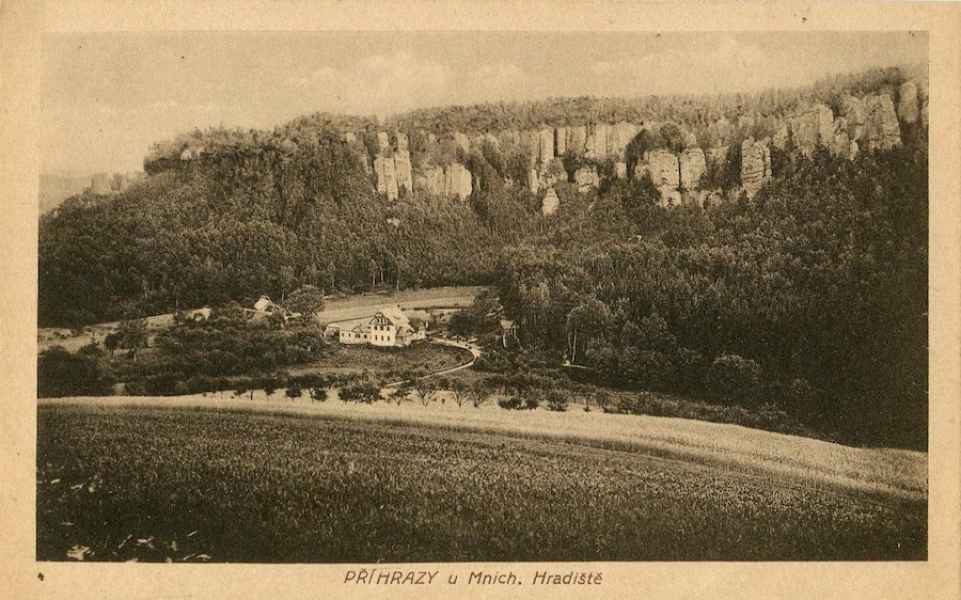 Osada Příhrazy vznikla nejspíše v 18. století. Příhrazy byly malou vesnicí asi s dvaceti obytnými domy. Přesto díky blízkosti romantických pískovcových skal byly již v 19. století známé a vyhledávané.